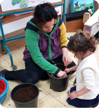 בגינה הטיפולית עצים וצמחים רבים המזמנים לילדים אפשרות לחקור, לגעת ולהתקרב לטבע. בגינה מתקיים טיפול רגשי בגינון. בנוסף, הגינה היא חלק בלתי נפרד מהפעילות השוטפת בגנים ומתקיימת בה פעילות רחבה של שתילה, זריעה, השקיה, קטיף, אכילה, שתייה, משחקים בבוץ , יצירות אומנות ובניית ערוגות, גדר וכדומה.